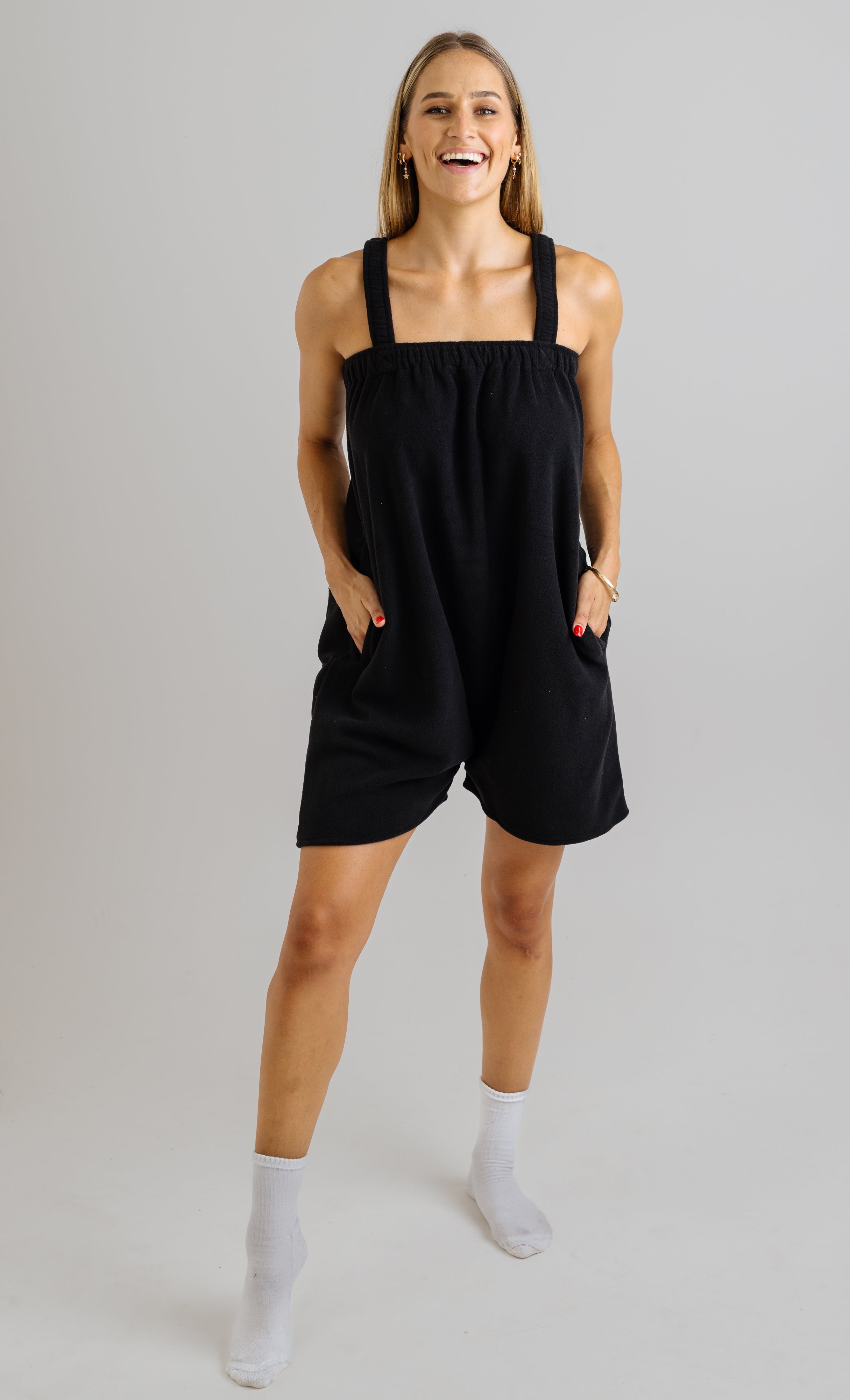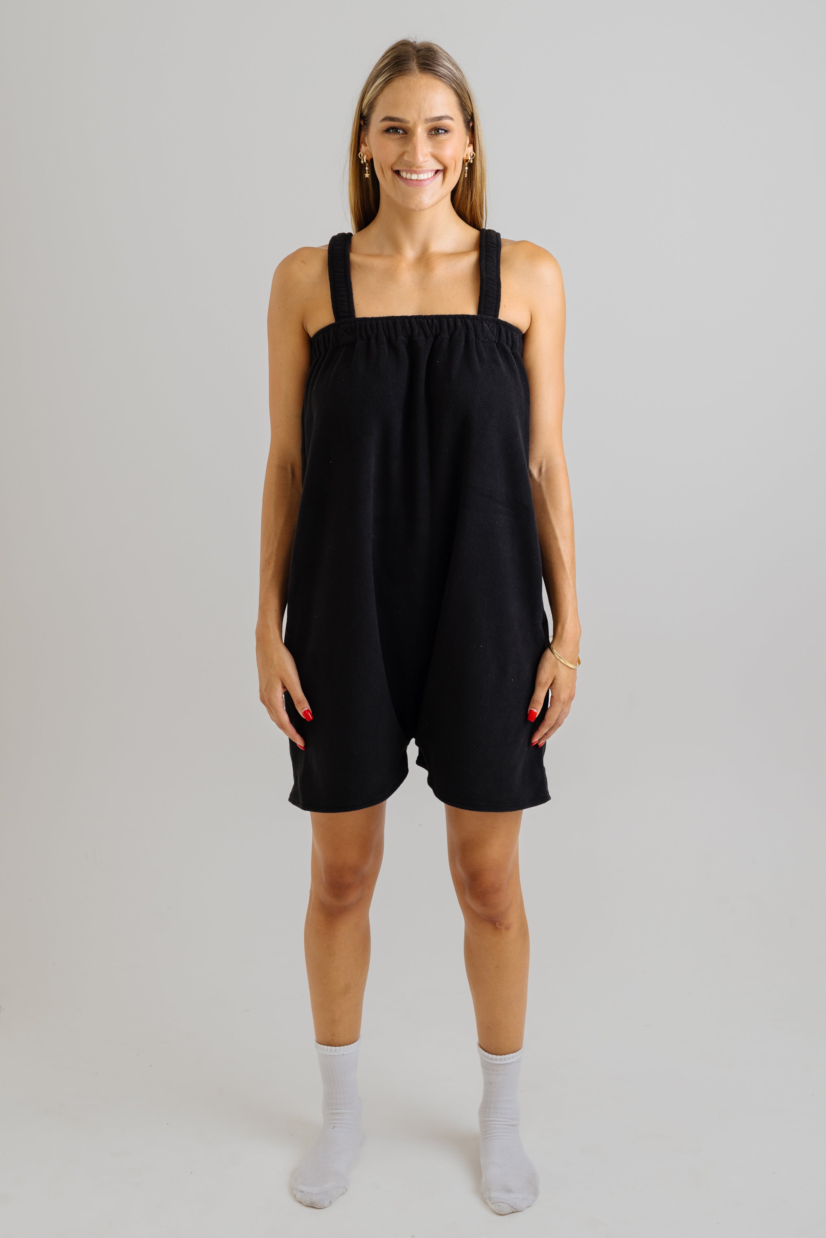 A cozy one piece jumper made from 100% polyester polar fleece, designed to keep you warm and comfortable while getting ready. This short freddie is available in one size (for now)!